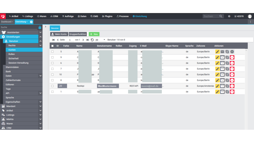 Hier ist der Pfad im Plentymarkets Backend dargestellt unter dem die Benutzer konfiguriert werden.